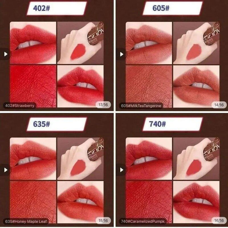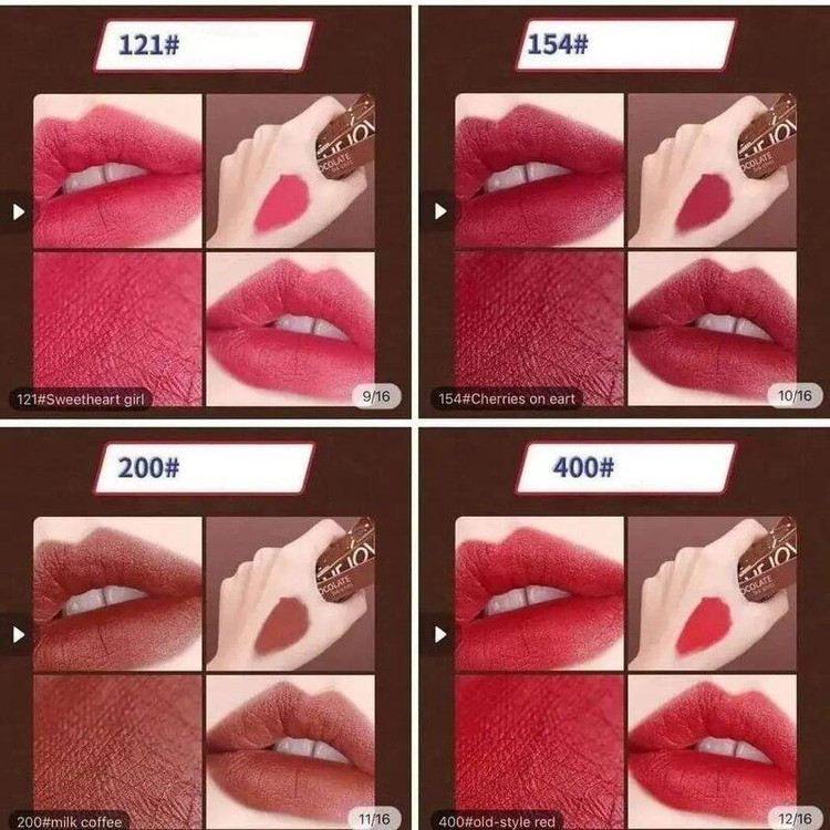 رژهای شکلاتی از بهترینای گالری ما هستن. اگه یه بار امتحانش کنین عاشقش میشین اینقدر که کیفیت بالایی دارن. اصلا ترک ترک نمیشن رو لب کاملا مات و مخملی هستن. طعم و بوی شکلات 🍫 دارن😋😋😋