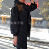 مانتو مشکی شیک و مجلسی کوتاه جلوباز قزن دار پارچه فکورا