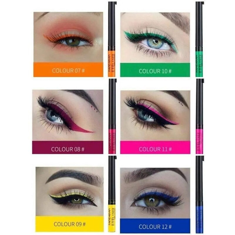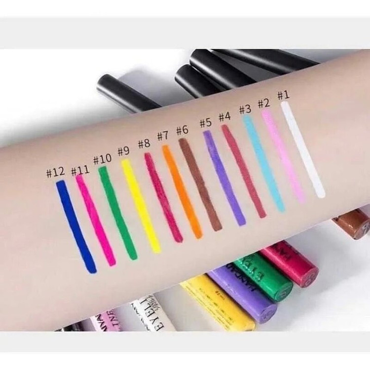 سوپراااااایز✌️✌️خط چشم رنگی اورجینال از برند هاندایان❤️ از برند ۱۰۰٪اورجینال هاندایان با کیفیت بی نظیر و درجه یک❤ این خط چشمای خوشگل رنگی رنگی ۱۲تا رنگ خیلی خوشگل ناز داره😍 خط چشم رنگی هاندایان کاملا مات هستش سری خط چشم مویی هستش و پیگمنت و رنگ عالی داره😍 خیلی خیلی نرم روان میکشه ✅ و اصلا تیکه تیکه نمیشه خیلی زود خشک میشه و ۲۴ ساعته ماندگاری داره و خیلی راحت به شکل فیتیله یی پاک میشه😊