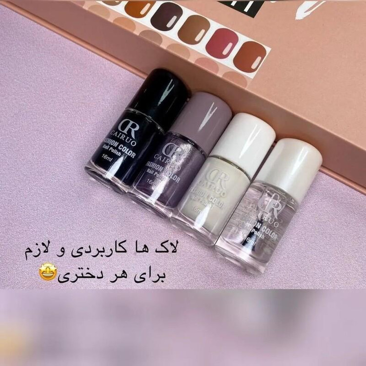 پک لاک ۲۴عددی اورجینالCAIRUO💅🏻😋 فکر نکنم دختری باشه که عاشق این پک نشه😎✋🏻 دخترا عاشق لاک هستن و این پک به شدت رویایی و خاصه😍☺️ این پک لاک جذاب: ۲۴عدد لاک فوق العاده خوش رنک داره پکیج بسیار شیک عالی و داره رنگ بندی بسیار متنوع و کاربردی داره تا۲۰۲۵انقضا داره حجم هر لاک۱۶میل هستش و بزرگه قلم لاکا بسیار با کیفیت و عالیه مایع لاکا بسیار با کیفیت هستش و اصلا خشک و خمیری نیست خیلی زود روی ناخن خشک میشه انواع رنگای متالیک و شاین و ساده رو داره برق ناخن هم داره لاک سفید و مشکی هم داره . خبر خوب اینکه این لاک های خوشگل به صورت تکی هم به فروش میرسن🌹🌹