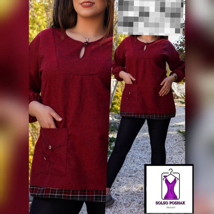 بلوز پاییزه طرح جیب پایین چهارخونه پشمی زمستانه قواره بزرگ خوش ایست