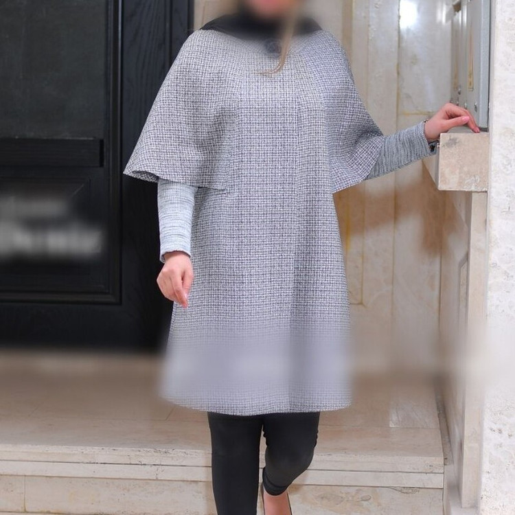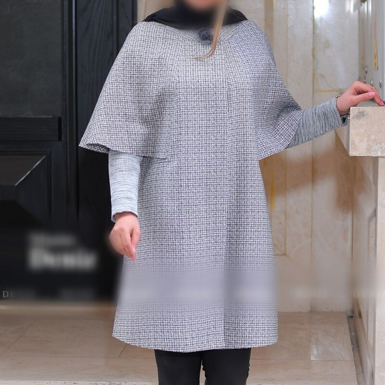 مانتو زنانه بوکلد شنلی بلند طوسی خوش ایست و مجلسی پاییزه