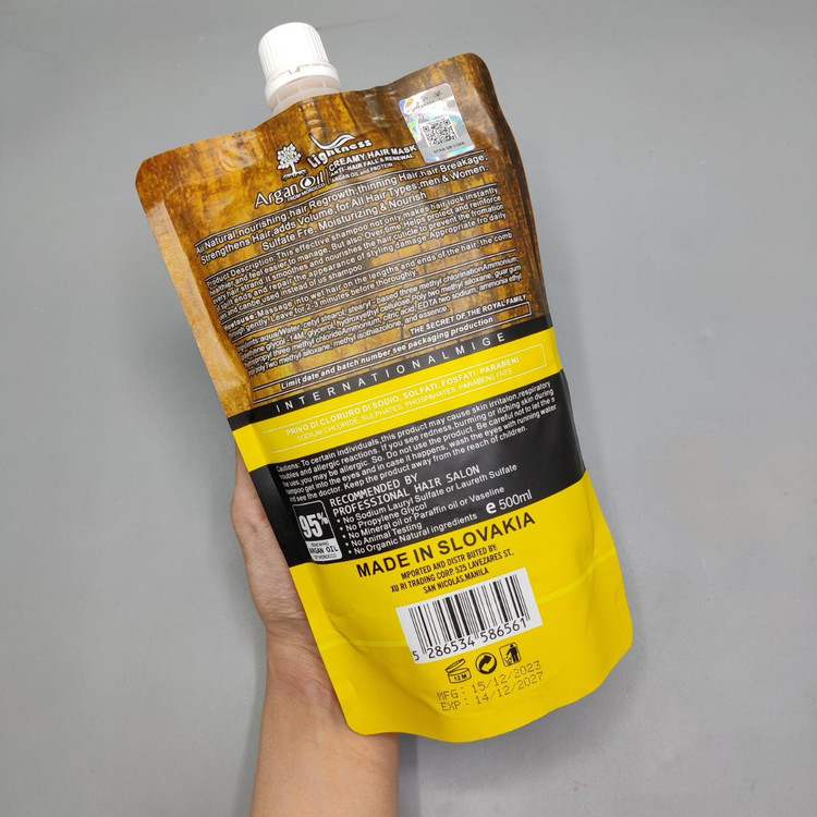 ماسک مو روغن آرگان لایتنس مناسب موهای کراتین شده یا آسیب دیده دارای ۹۵٪ روغن آرگان خالص مراکشی ضد وزی و خشکی مو فاقد سولفات ضد ریزش مغذی و ویتامینه مو ترمیم کننده،شاداب کننده و آبرسان اورجینال محصول کشور اسلواکی برای استفاده داخل حمام